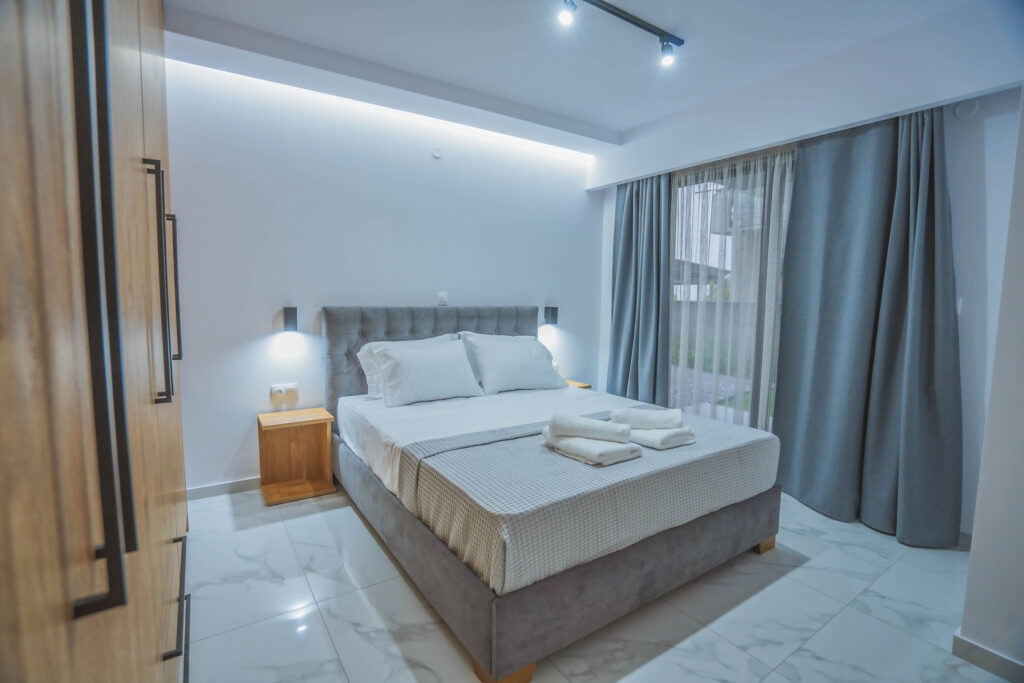 εξοπλισμένη κουζίνα με ψυγείο και κλιματιστικό τελευταίας γενιάς για να έχεις την ιδανική ατμόσφαιρα όλες τις εποχές. Τέλος το κάθε δωμάτιο διαθέτει από ένα διπλό κρεβάτι, από μια smart τηλεόραση και μεγάλες ντουλάπες.